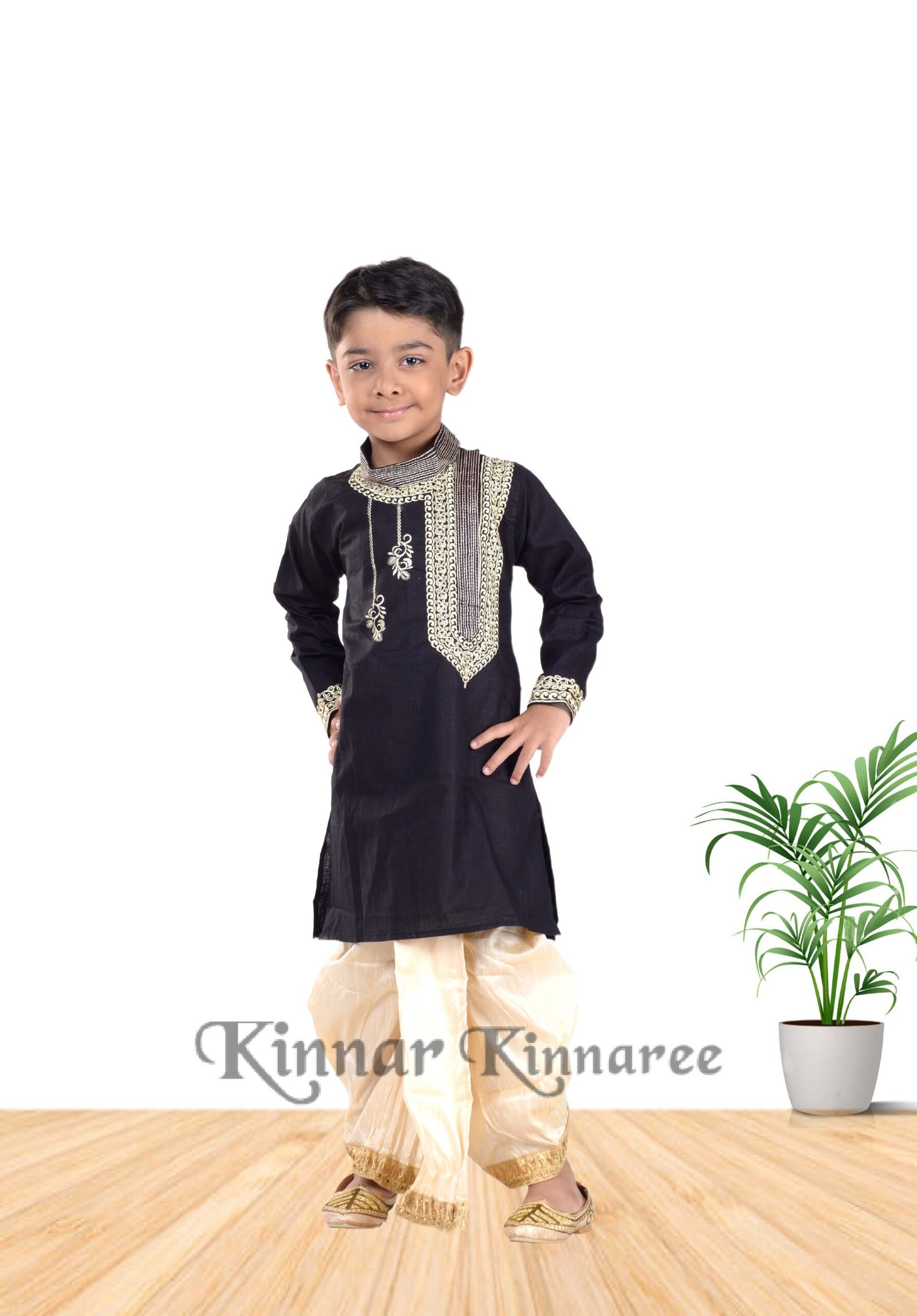 Side Button Design On Lilen Panjabi & Fancy Silk Zari Work Dhuti